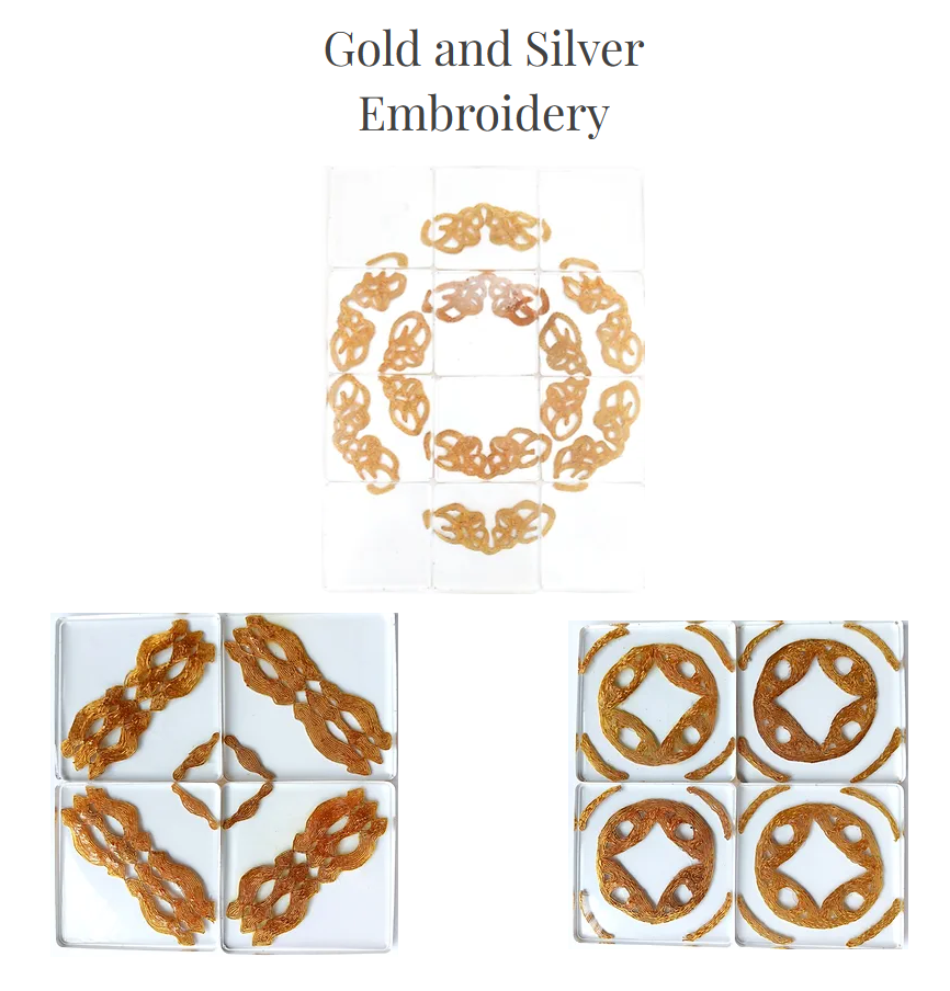 I specialise in embroidery. I love to work with synthetic gold and silver bullion wire. Check out more of my work in my online portfolio.